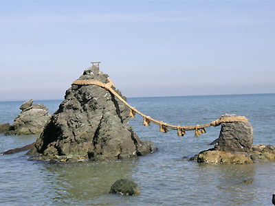 元来二見浦は清流・五十鈴川の河口に位置し、古来「清き渚」と呼ばれ、心身を清める禊ぎ(みそぎ)の場でした。今でも、伊勢神宮参拝前に心身を清める習慣が、「浜参宮」として受け継がれています。現在の浜参宮は二見興玉神社でのお払いが一般的です。